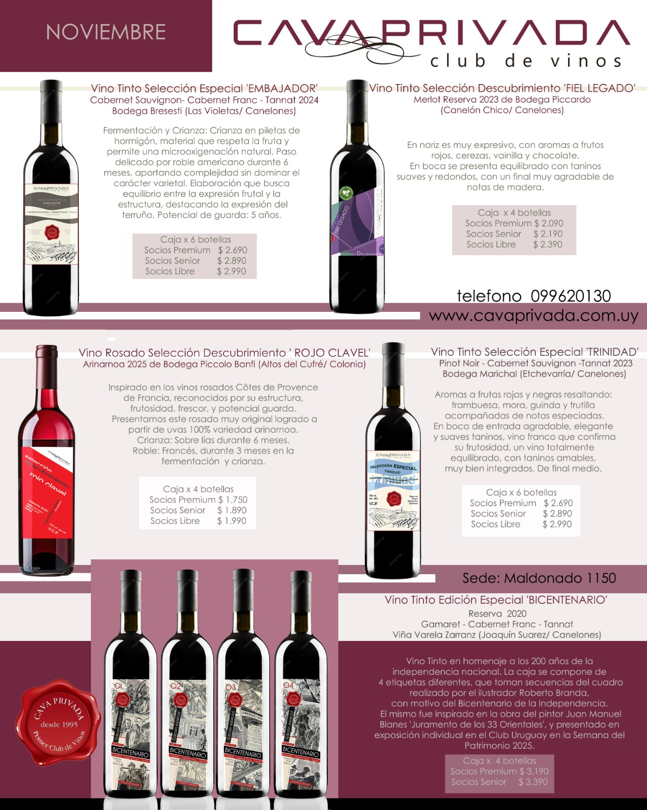 Cava Privada Club de Vinos trabaja junto con las mejores bodegas de Uruguay para ofrecer cada mes, 2 (o más) vinos originales y exclusivos (con etiqueta propia) y entregarlos a domicilio a sus socios.