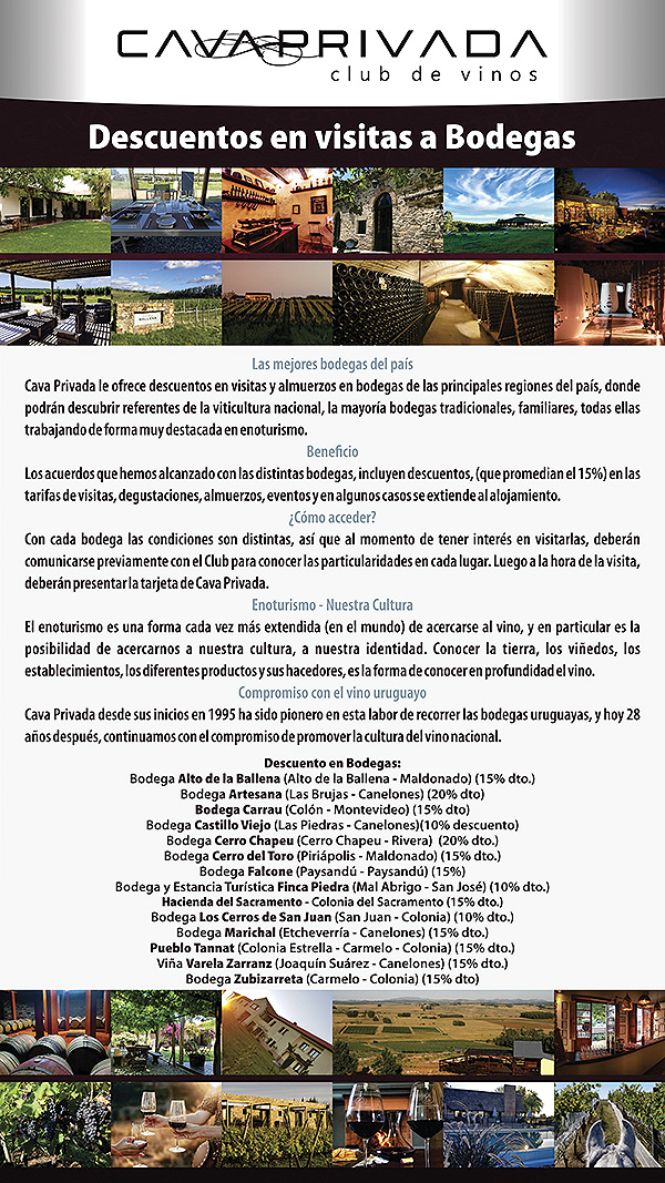 Ideal para uruguayos y extranjeros que quieran probar vinos uruguayos originales, exclusivos de las mejores bodegas del país.